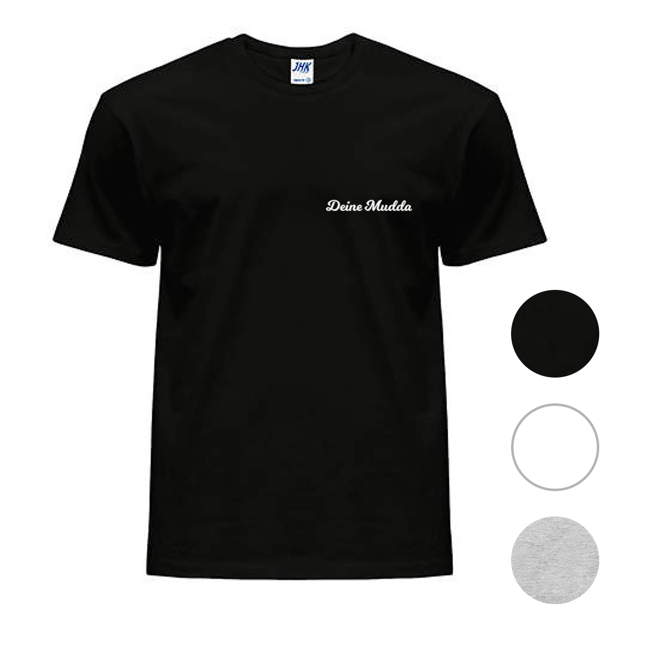 Unisex Shirt | Print auf der linken Brust | Rundhalsausschnitt | in den Farben Black (100% Baumwolle), Ash Melange (98 % Baumwolle, 2 % Viskose) und White (100 % Baumwolle) erhältlich | 150-169 g/m²